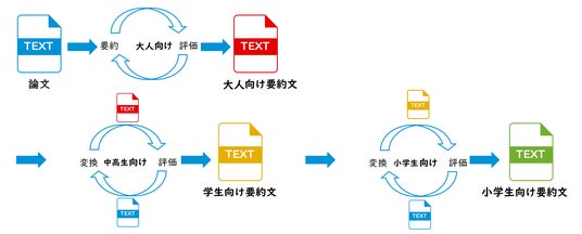 大人向けに作成された解説文を基に中高生向け解説文を作成し、さらに中高生向け解説文をもとに小学生向け解説文を作成することにより、論文内容から解説文が乖離しないようにしています。