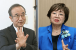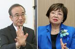(左)花角英世氏(64)=無現=(自民支持)(右)片桐奈保美氏(72)=無新=(共産、れいわ、社民推薦)