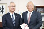 包括連携協定を結んだ柏崎信用金庫の小出昭夫理事長(左)とフォーバルの中島將典社長=柏崎市東本町1