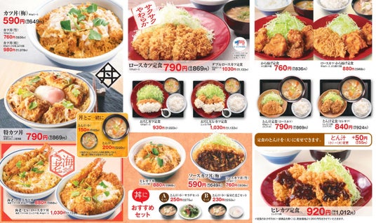 定番メニューの「カツ丼(梅)80gロース」は590円(税込649円)。定食メニューで人気の、サクサクな⾐とやわらかなお肉を味わえる「ロースカツ定食 120gロース」は790円(税込869円)と、お手頃価格で「とんかつ」をお楽しみいただけます。