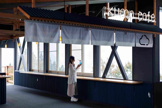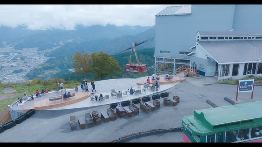 kumo cafeは世界最大級166人乗りの湯沢高原ロープウェイで約7分の空中散歩、湯沢高原スキー場/パノラマパークの山頂エリア、標高約1,000mのロープウェイ山頂駅を中心としたエリアにあり、屋内のカフェと屋外で足湯を備えたオープンデッキエリアで構成されています。眼前には、谷川連峰から越後三山の大パノラマの絶景とともにお楽しみいただくことができます。もちろん屋内のカフェでもオープンデッキでもこれらの商品をお召し上がりいただくことができます。