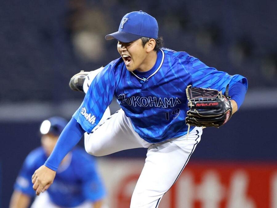 7回に登板し、三者凡退に抑えたDeNAの5番手山﨑康晃=6月18日、エコスタ