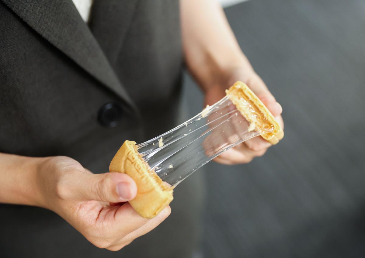 長岡市民にはおなじみ長命堂飴舗(長岡市)の「飴もなか」。香ばしいもなかの中にトロトロの水あめが詰まった逸品で、1931年の発売から今に至るまで愛されてきました。