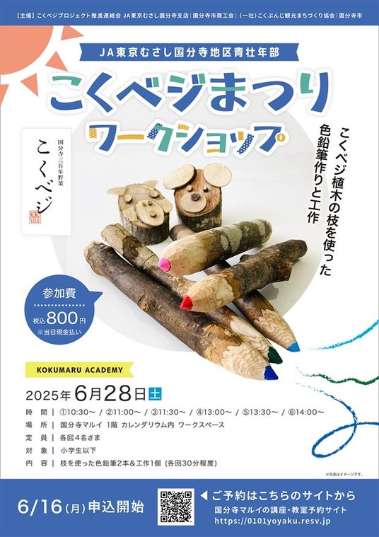 「I LOVE 国分寺」と同時開催の『こくべジまつり』では、野菜や果物などの販売だけでなく、植木の枝を使った色鉛筆づくりや、ぬか漬けづくりなどのワークショップも、開催します。
