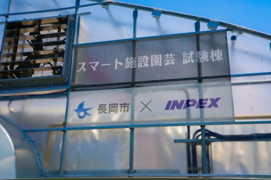 当施設は、総合エネルギー企業である株式会社INPEXの社内起業チームが雪国・冬季低日照の環境ハンディを抱える長岡市農業の諸課題を解決しながら農業ビジネスの可能性を追求し、長岡市との連携のもと最新技術を取り入れた低環境負荷の「スマート施設園芸 試験棟」を建設したものです。