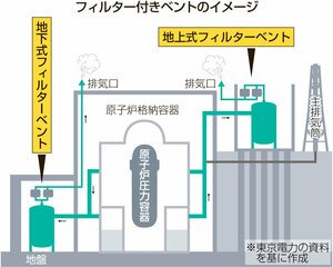 ベント設備は、2011年の東電福島第1原発事故2011年3月11日に発生した東日本大震災の地震と津波で、東京電力福島第1原発(福島県大熊町、双葉町)の6基のうち1~5号機で全交流電源が喪失し、1~3号機で炉心溶融(メルトダウン)が起きた。1、3、4号機は水素爆発し、大量の放射性物質が放出された。でも使われ、放射性物質が飛散した。フィルター付きベントはいわばその改良型で、放射性物質を一定程度吸着させ、飛散を大幅に減らす機能が付いている。