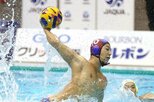 練習する水球男子日本代表の稲場悠介主将=東京都内