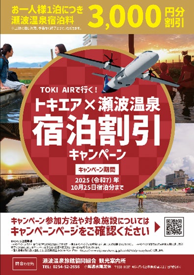 さらに村上市への誘客として、村上市の日本海沿岸にある温泉地「瀬波温泉」の宿泊が1人3,000円割引となるキャッシュバックキャンペーンも実施予定です。詳しくは下記URLをご覧ください。