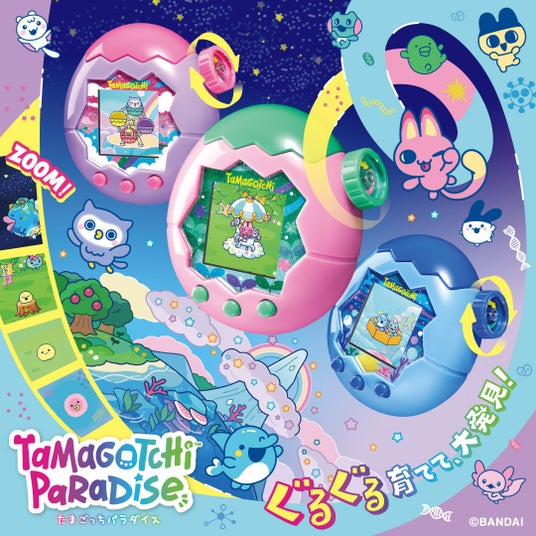 『たまごっち』とは1996年11月23日に発売され、女子高生を中心に大ブームを巻き起こした“デジタルペット”です。新しい遊びや機能を追加したシリーズが世界で展開され、1996年からこれまでに全世界累計9,810万個を販売しています(2025年3月時点)。2025年7月12日には、新機能 「ズームダイヤル」で宇宙~細胞規模までお世話ができる、新しいたまごっち『Tamagotchi Paradise』が発売されます。