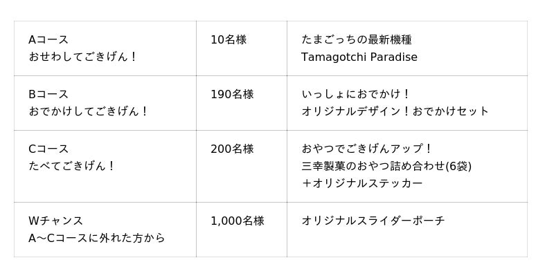 この度、『たまごっち』と三幸製菓がコラボレーションし、プレゼントキャンペーンを開催します。