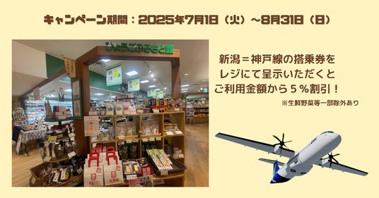 「新潟=神戸」搭乗券を、ひょうごふるさと館の店頭レジにてご呈示ください。