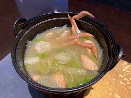 ● 番屋汁(ばんやじる)は、新潟県長岡市寺泊地域の郷土料理で、漁師たちが番屋(漁師の休憩所)で作っていた味噌仕立ての魚介汁のことです。旬の魚介類や野菜を使い、味噌で味付けした温かい汁物で、漁師の賄い料理として親しまれてきました。● 当店ではこの番屋汁を、わっぱ飯と同様、お一人ごとの卓上コンロに乗せて提供することで熱々をお召し上がりいただけます。