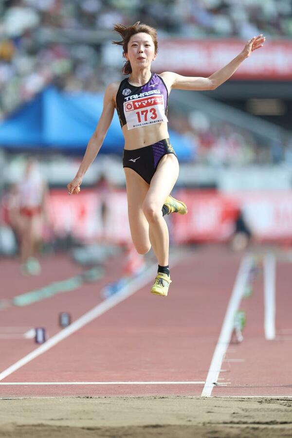 女子走り幅跳び決勝 出場した権瓶明日夏=国立競技場