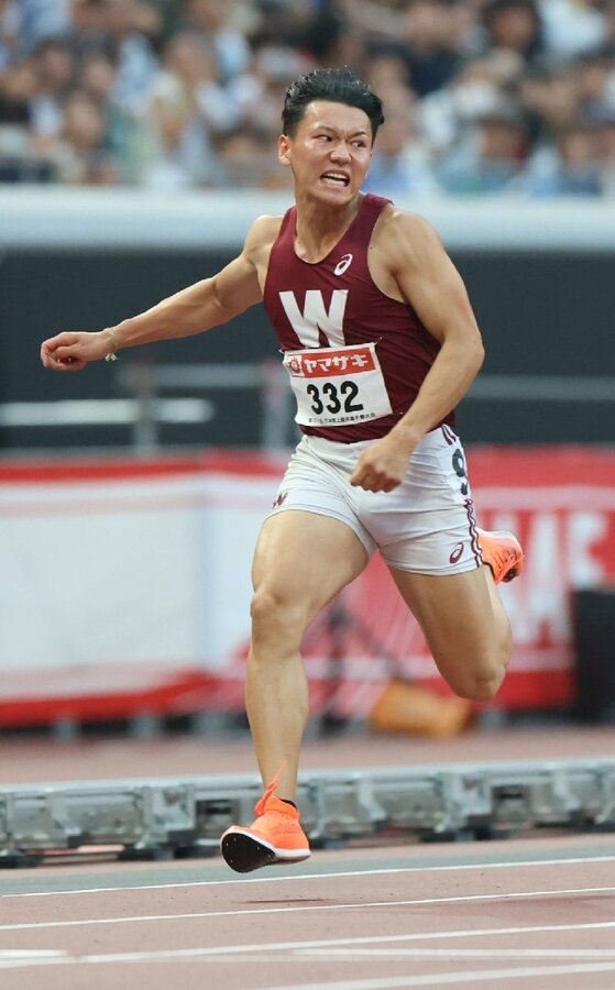 男子100メートル決勝 3位と健闘した関口裕太=国立競技場