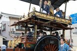 村上大祭の本祭りで練り歩く「おしゃぎり」。沿道は見物客でにぎわった=7日、村上市長井町