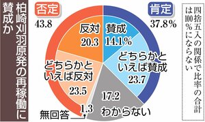 新潟日報社は20日投開票の参院選に合わせ、県内有権者を対象にインターネットを介した独自調査を15日に行った。東京電力柏崎刈羽原発の再稼働への賛否を尋ねたところ、「反対」「どちらかというと反対」の再稼働に否定的な回答が43・8%となり、「賛成」「どちらかというと賛成」を合わせた肯定的回答の37・8%を上回った。