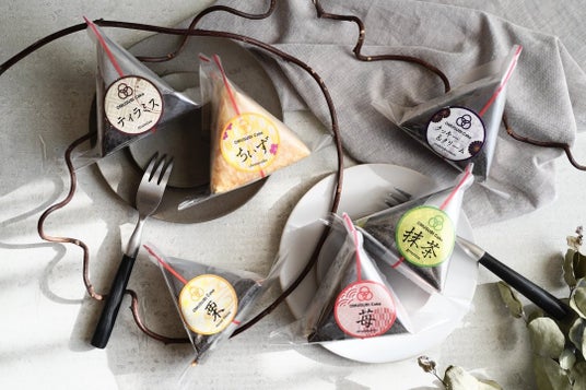 海苔に見立てているのはブラックココアで作られたクレープ生地。こちらを巻くことで手を汚さずに食べられます。見た目も開け方も完全におむすびなのに、食べるとしっとりフワフワのケーキ。