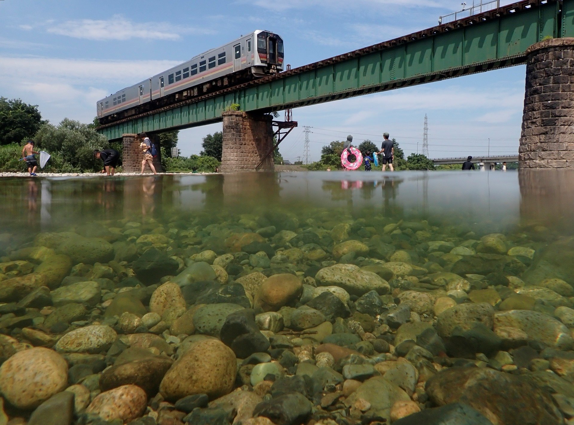 川や海の浅瀬に入り列車を狙うのです。列車を待つ間、水に浸かっていたなら気持ちがいいのではないか。暑い夏でならではの思いつきでした。炎天下で何時間も列車を待つのも、エアコンをかけたままの車内で過ごすのも身体や環境経済的によくありません。