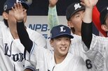 5回全パ1死二塁、滝沢が右前に適時打を放つ。捕手坂倉=横浜