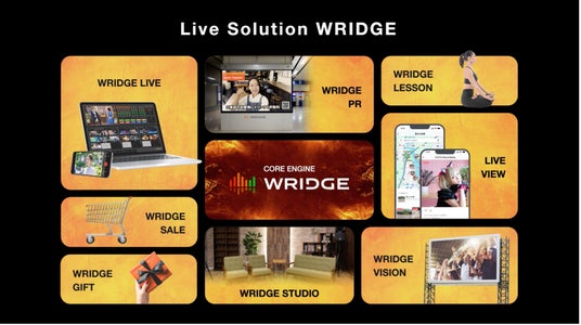 リアルタイムの映像伝送や制御技術を駆使し、多様な用途に活用するのがLive Solutionです。その統合プラットフォームとしてオンライントレーニング、Live PR、ライブコマース、無人配信スタジオなどを実現できるLive Solution「WRIDGE」を開発・運用しています。