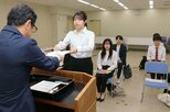 18日は新潟市中央区役所の期日前投票所を訪れた。山田教授自身が投票をして2人に流れを説明。入場...