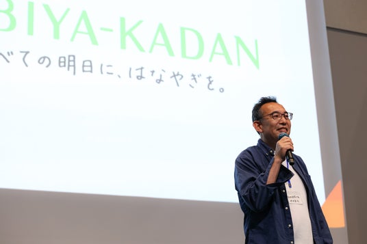 副賞として株式会社日比谷花壇より花束が贈呈され、受賞者からは喜びのコメントも。審査員・登壇者・出場者全員での記念撮影を行い、会場は温かな拍手に包まれました。
