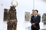 「海」の書を前に「新潟島の空や景色にすごく引かれた」と語る華雪さん=新潟市中央区の砂丘館