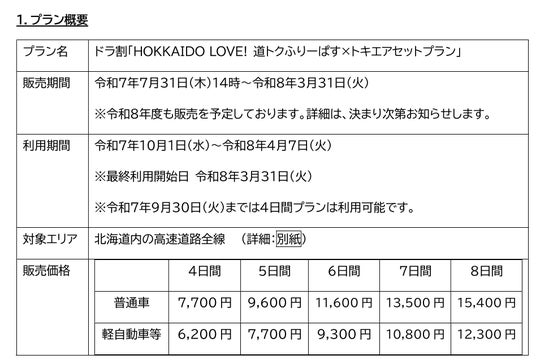 新潟拠点の地域航空会社トキエア株式会社(本社:新潟県新潟市 代表取締役:長谷川政樹、和田直希、以下トキエア)と、NEXCO東日本北海道支社(札幌市厚別区)は、ドラ割「HOKKAIDO LOVE! 道トクふりーぱす×トキエアセットプラン」(以下、本プラン)を、好評につき令和8年3月31日(火)まで販売期間を延長します。