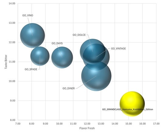 AIによる官能評価システムを活用して、「郷(GO)GRANDCLASS 魚沼コシヒカリEdition」を評価した結果
