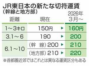 社会 鉄道・バス・乗り物 JR東日本が平均7%運賃値上げへ、2026年3月から 越後線の新潟-上所間は150円から160円に 2025/8/1 19:45 (最終更新: 2025/8/1 22:39) JR東日本は8月1日、来年3月から運賃全体で平均7・1%値上げする申請が国土交通省から認可されたと発表した。本格的な値上げは、消費税の導入時や増税時を除くと1987年の民営化後初めてとなる。料金体系は... 残り893文字(全文:994文字) ここから先を読むには 続きを読む(会員登録する) 続きを読む(ログイン) 新潟日報朝刊を購読していますか? はい いいえ トップページで最新情報を見る 関連ニュース 新潟県湯沢町のバス「苗場線」値上げへ、ゾーン制採用で最低運賃... 3/27 えちごトキめき鉄道に新潟県と上越市・糸魚川市・妙高市が資金支... 2/14 10月値上げ方針のえちごトキめき鉄道(新潟県上越市)、乗り継... 2/13 JR直営?三セク?米坂線の運営方法は…4案提示のJR東日本側... 1/22 上越・北陸新幹線の一時運転見合わせ、原因は熊谷駅(埼玉県)付... 12/9 北越急行(南魚沼市)が営業収益減、芸術祭反動で運輸振るわず・... 12/9 弥彦村の自動運転バス、弥彦温泉街を走る新ルートを土日祝日限定... 12/4 南魚沼市の名所旧跡、安全運転でご案内♪ 銀嶺タクシーが観光専... 12/4 [停電情報]新潟市東区などで一時1205軒、新潟空港も 倒木... 11/28 新潟市西区で国道116号「新潟西道路」の建設開始、新潟西バイ... 11/27 減便続く新潟市の路線バス、新潟駅南北開通も“宝の持ち腐れ”…... 11/23 県内タクシー運賃、普通車初乗り上限700円に引き上げ 燃料費... 11/21