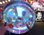 会場は「水中の夏祭り」をテーマにした幻想的な空間が広がる。長岡発祥の品種「玉サバ」をはじめとする金魚1000匹や、県産の「黄白(きじろ)」など錦鯉200匹以上が優雅に泳ぐ。