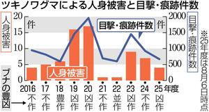 新潟県は7日、クマ出没警戒警報を発令した。4〜7月の出没件数が前年の同時期を上回り過去最多を更新したことに加え、ツキノワグマの餌となるブナの実が今秋「凶作」と予測されるため、注意報から引き上げた。県は「凶作になると冬眠前のクマが餌を探して人里に現れるようになり、人が襲われる危険性が高まる。注意してほしい」と呼びかけている。