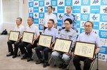 県警と自動車安全運転センターによる連名表彰。事故や違反の記録をまとめた運転記録証明書を申請した事業所で、過去1年間の人身事故や交通違反率の低さなどに応じて表彰される。7月上旬に伝達式があり、湊克彦署長が賞状を手渡した。