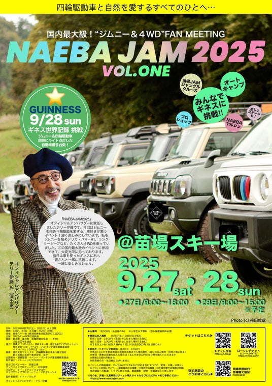 なにかと話題のジムニー&4WDイベント『NAEBA JAM 2025』のオフィシャルアンバサダーにテリー伊藤氏が就任、コメントも発表した!!︎伊藤氏はモータースポーツやクラッシックカーにも造形が深くコレクターとしても有名で横須賀に秘密のガレージを所有するほど。