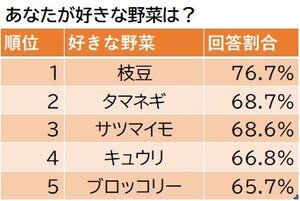 コンサルティング会社のグローカルマーケティング(長岡市)は14日までに、県内の子育て世代を対象に行ったアンケートで、好きな野菜ランキングの大人1位、子ども4位が「枝豆」だったと発表した。