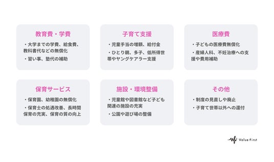 なかには、不妊治療の支援や保育士の処遇改善といった回答もあり、子どもだけに限らず、子育てに関わるすべての人々へ支援がいきわたるよう、上手く支援金を活用してほしいという意見が多いことがわかります。