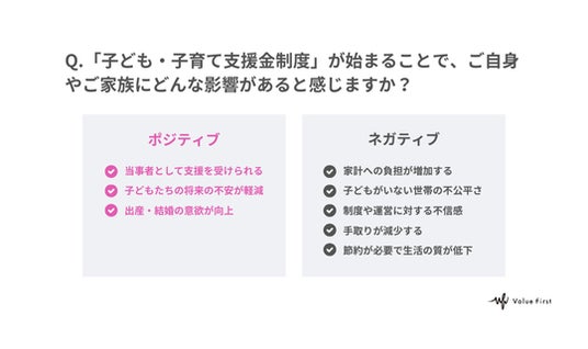 一方で、ポジティブな意見として、子育て世帯へのメリットが大きいことや出産・結婚に対する意欲が向上することなどが挙げられています。