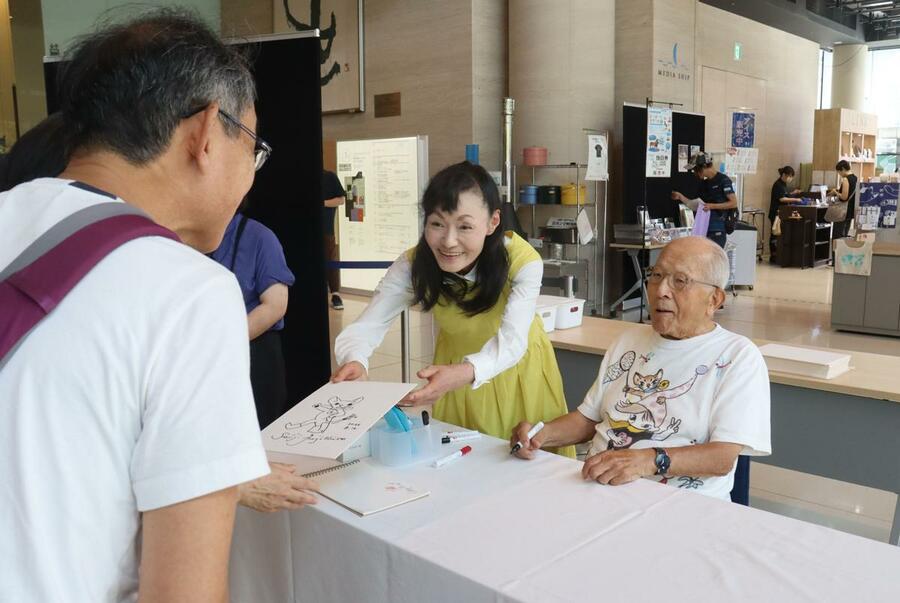 サイン会は、17日も行われる。展覧会は9月7日まで。午前10時〜午後4時(最終入場は午後3時半まで)。一般800円、中・高校生500円、小学生以下無料。