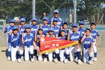 小学生野球の高円宮賜杯第45回全日本学童軟式野球大会マクドナルド・トーナメントを制し、喜ぶ長曽根ストロングスの選手たち=エコスタ