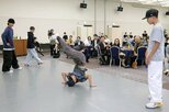 ジュニアの選手に夏場のトレーニング方法を指導する古野慧選手=長岡市学校町1