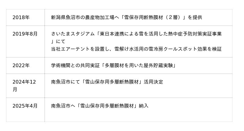 大型膜面構造物(テント構造物)や土木・物流資材などを手がける太陽工業株式会社(東京本社:東京都世田谷区、大阪本社:大阪市淀川区、代表取締役社長:能村 祐己)は、今春より南魚沼市役所(新潟県)の排雪を利用した冷房設備の実証実験に協力しています。5月12日からは、屋外に保存した雪山を利用した雪冷熱設備が稼働しており、南魚沼市役所の電力消費削減に効果を発揮しています。