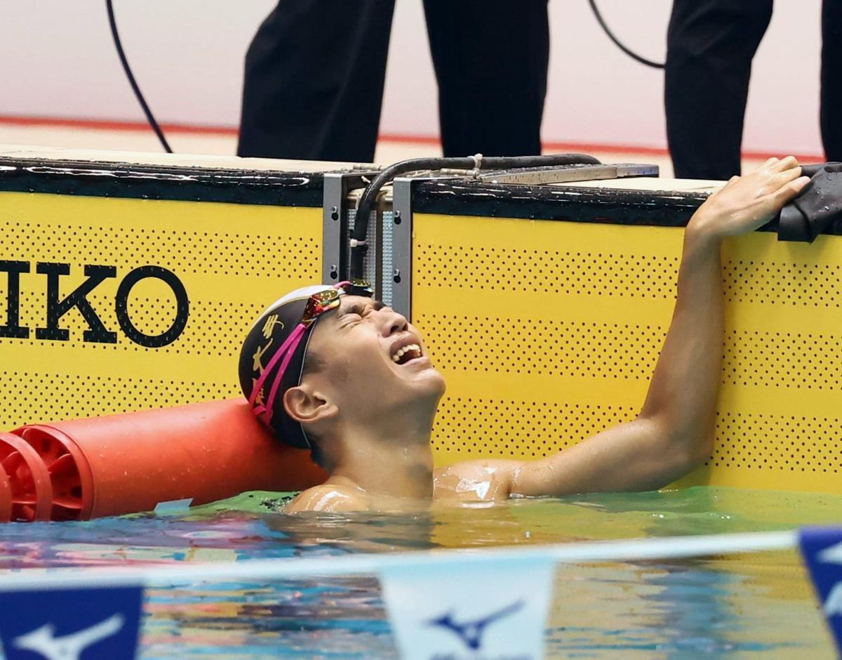 逆転されて優勝を逃し、涙が止まらなかった。男子400メートル個人メドレーの根岸歩夢(長岡大手)は0秒13及ばず、200メートルに続き2位。「本当は自己ベストを更新したかったし、優勝もしたかった」と声を振り絞った。