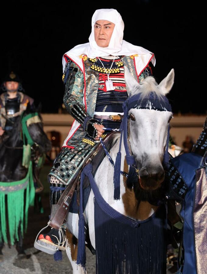 恒例の出陣行列は、川中島の合戦へ向かう場面を再現したもので、これまで公募で選ばれた市民や数々の俳優らが謙信役を務めてきた。今年は「暴れん坊将軍」など数多くの時代劇に出演し、幅広い世代に人気の松平さんが選ばれた。