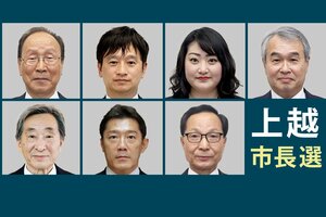 26日で投開票まで2カ月となる上越市長選(10月19日告示)は、7人が立候補の意向を示し、乱立する異例の展開になっている。早くに出馬表明した現職と元職に加え、新人が短期間に相次いで名乗りを上げたことで、県内の市長選では候補者数が過去最多となる可能性も出ている。保守系の候補が次々と参戦を表明する背景には、かつて市政に大きな影響力があったとされる「調整役」の不在がある。