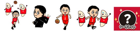 今回のコラボ商品には、富樫選手オリジナルのダイカットステッカーを1箱につき1枚ランダムで封入しています。全5種類のステッカーのうち、4種類はデザインを公開。残り1種類はシークレットとなっており、どのデザインが出るかは開けてからのお楽しみ。スマホケースに挟んだり、身の回りのアイテムに貼ったり、自由に楽しめる特別なノベルティです。