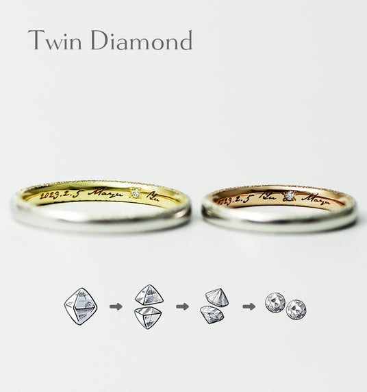 Twin Diamond(ツインダイヤモンド)同じ原石から削り出した2粒のダイヤモンド「ツインダイヤモンド」を1セット進呈。