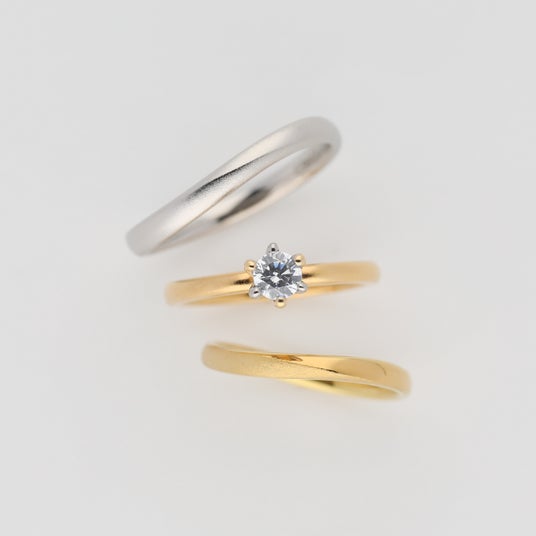 結婚指輪と婚約指輪をセットでご購入いただくと、ご購入金額の高い商品から10%のお値引きとなり、最大55,000円のお値引きとなります。結婚指輪と婚約指輪を同時にご成約いただかなくても適用となります。その場合、後からご購入いただく商品から10%のお値引きとなります。