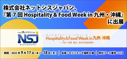 株式会社ネットシスジャパン(代表取締役:徳正 賢/本社:東京都中央区)は2025年9月17日(水)~18日(木)にマリンメッセ福岡B館にて開催される『第7回 Hospitality & Food Week in 九州・沖縄』(以下、同展示会)に出展します。