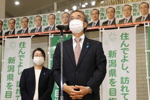 当選を受けて「若い世代、子育て世代に選んでもらえるように魅力ある、暮らしやすい新潟県を目指していく」と語った。