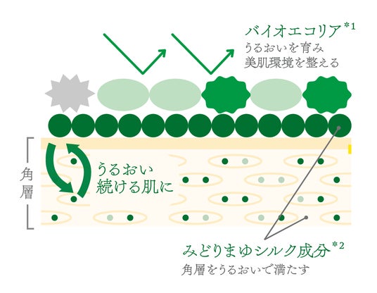 ・高配合みどりまゆシルク成分* がうるおいに満ちた肌へ